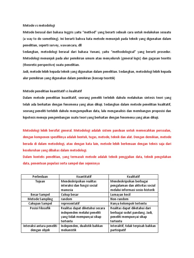 Doc Perbedaan Metodologi Dan Metode Dalam Penelitian Rezni Yuanda Academia Edu